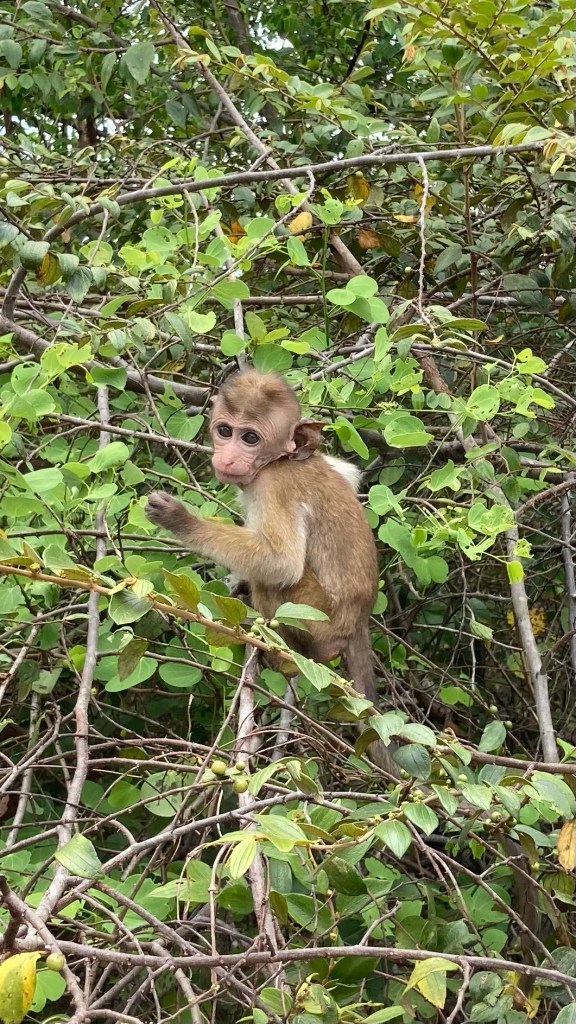 The southern coast of Sri Lanka is still largely untouched by tourism. We got there the day before Ramadan was over and the highway was practically empty because of last minute preparations. Eerie, but made for a quick drive. This was elephant day. Saw them in the wild by the highway, at the Natural Park, and at the Elephant Transit Home. The highway was new and very smooth. Electrified fences were erected to keep elephants away from the road. Guide said they push trees down on the wires and break the fence to cross over. People are not supposed to feed them, but we did see doing it. Guide said they are offered too many sweets and get diabetes . At the National Park, we got in safari vehicles to ride on. Very bumpy roads! Lots of birds. Saw many birds, including peacocks, a stork, and a vulture. Saw monkeys, water buffaloes, and of course! Elephants! There are 44 mammal species and 215 bird species. Weather was perfect. Warm but not hot and steamy.