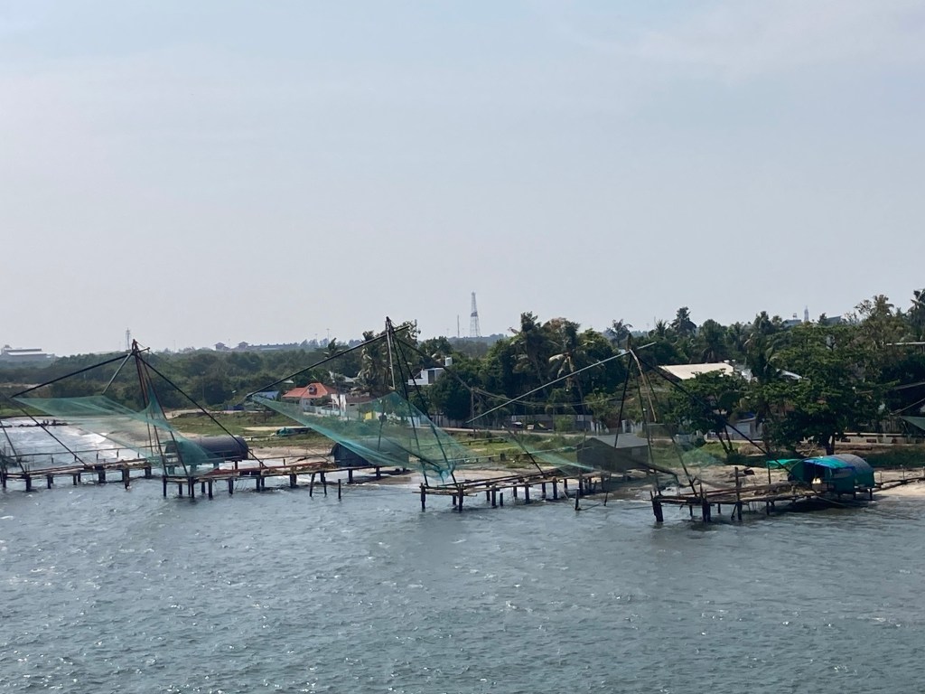 Chinese fishing nets drying. These were on the way going out of Cochin .