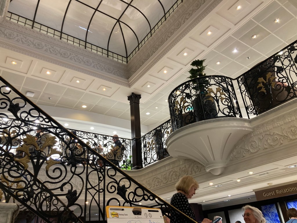 At sea. Had a special Mexican luncheon. Things got confused because of our first time change. Walked on deck, read, got more used to open sea. Kept trying to put things away and remember where they were in cabin.