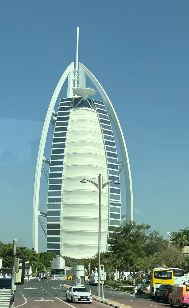 First day in Dubai. Left ship and checked into Amwaj Ritana JBR hotel. We could not get to our room right away so we had lunch on the patio. We got to our room about three. We were on the fifteenth floor overlooking the pool and beach area. Dubai has a well deserved reputation for being the “city of gold.” Everything is the biggest, tallest, and first of its kind. We could see the world’s biggest Ferris wheel from our room. Unfortunately it was not working. We could also see the beach and the Persian Gulf. Lots of activity outside including water skiing, jet skiing, parasailing, and the usual yachts trying to outdo each other. Lots of yachts. About thirty years ago before oil was discovered, Dubai was a little fishing village with Bedouins roaming by grazing their flocks. They had some pearl diving but that stopped when Japanese pearls got popular. Now, if you are a citizen, the Emerite provides you with land, a government job, a house, no taxes, free education and health services. The only way to be a citizen is to be born there with Emerite parents. You can work there but you must leave when you are sixty five. Most of the buildings downtown are apartments and condos for their guest workers. The workers are from all over the world. We were told there are eight workers on average for each citizen. Emerite citizens live outside town in their own area.
